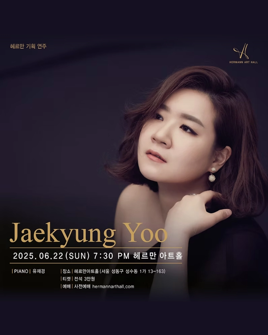 2025년 6월 22일 일요일 7시 30분에 헤르만아트홀에서 유재경 선생님의 독주회가 열립니다.